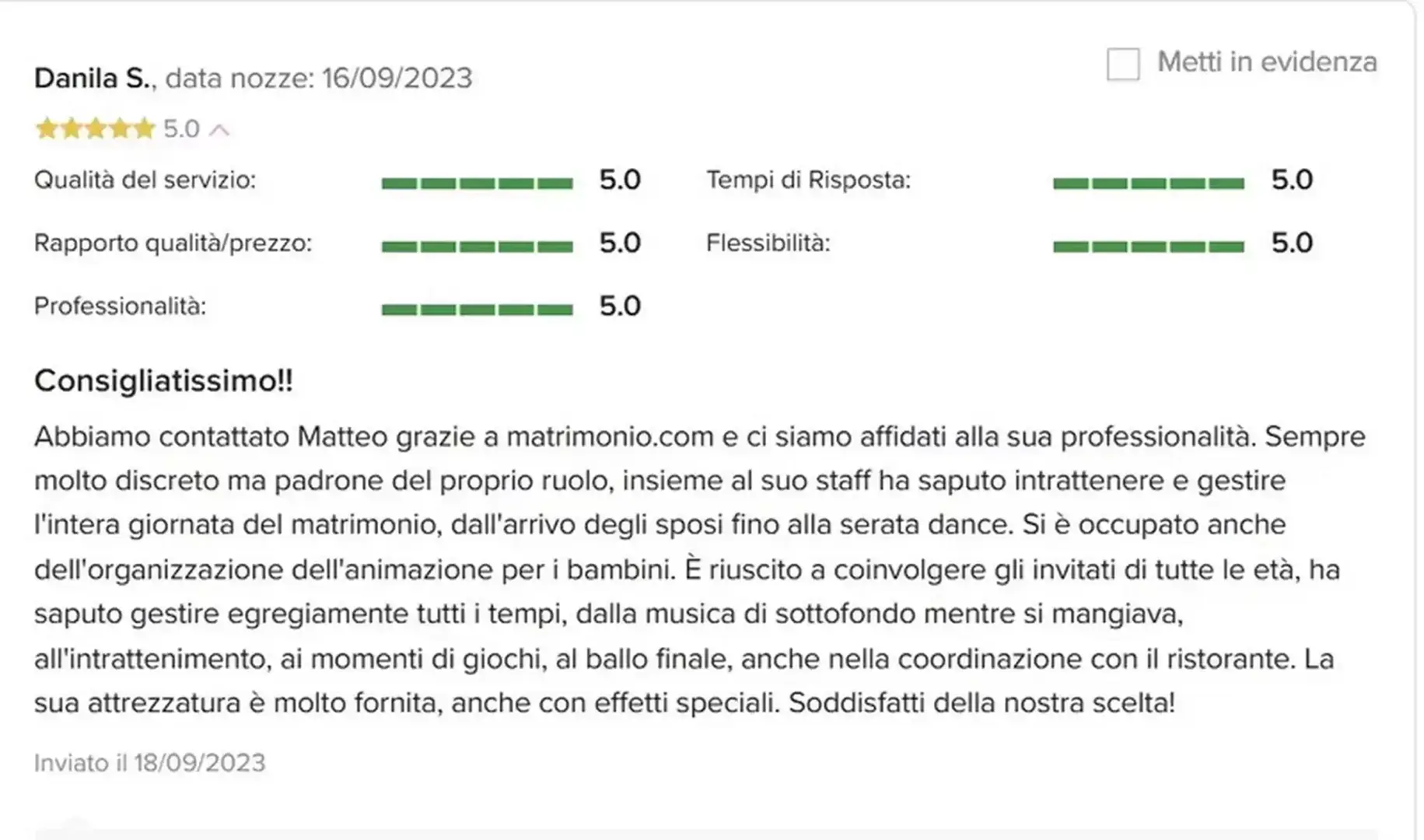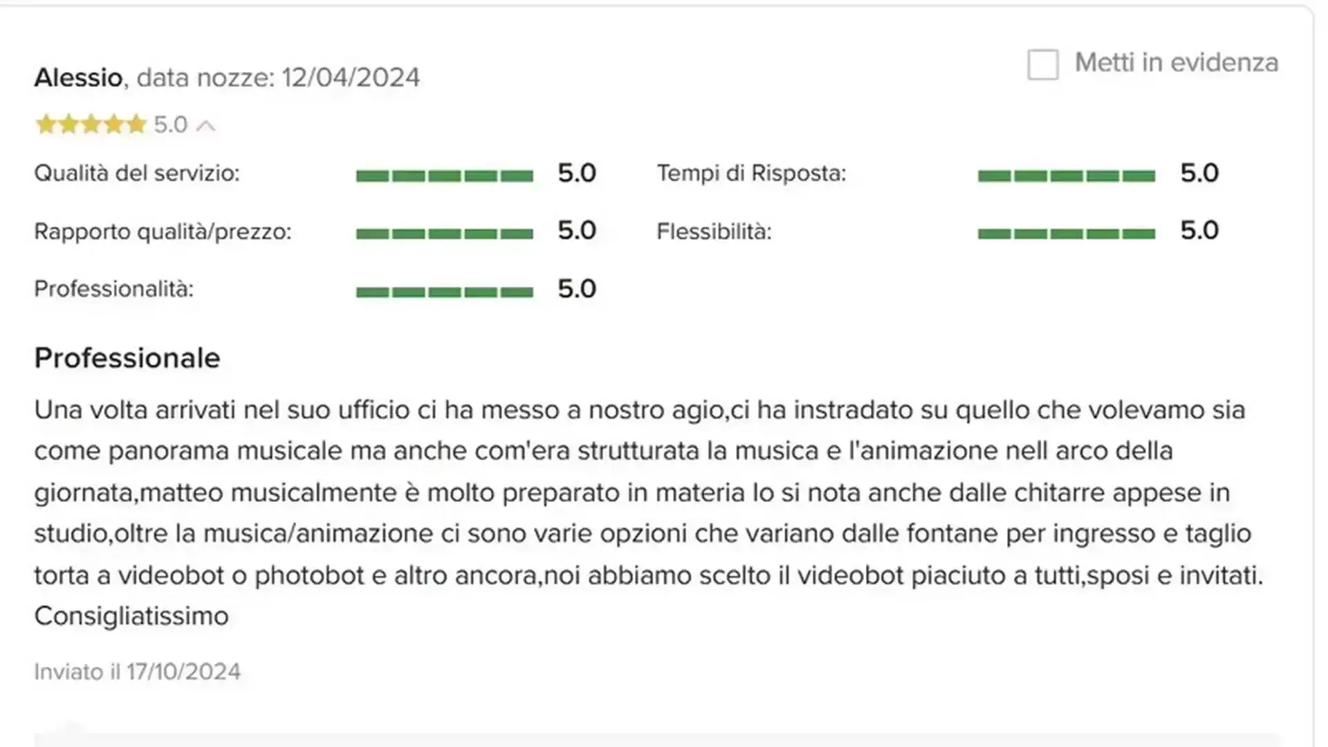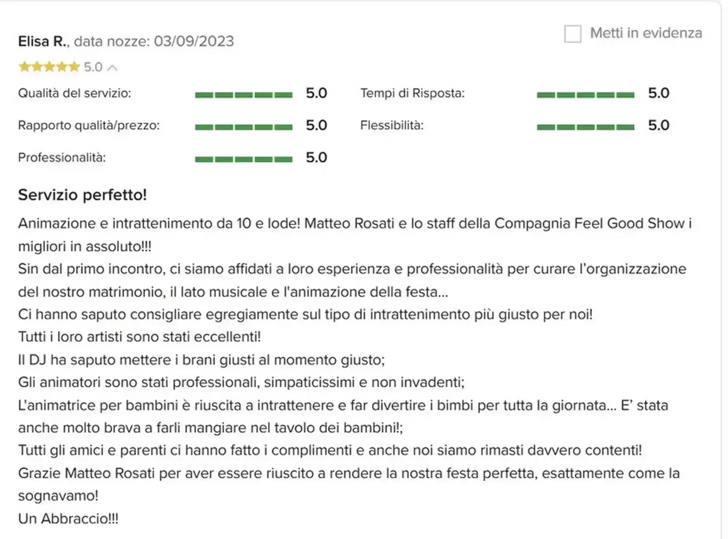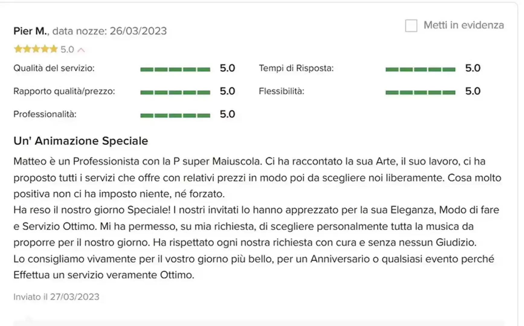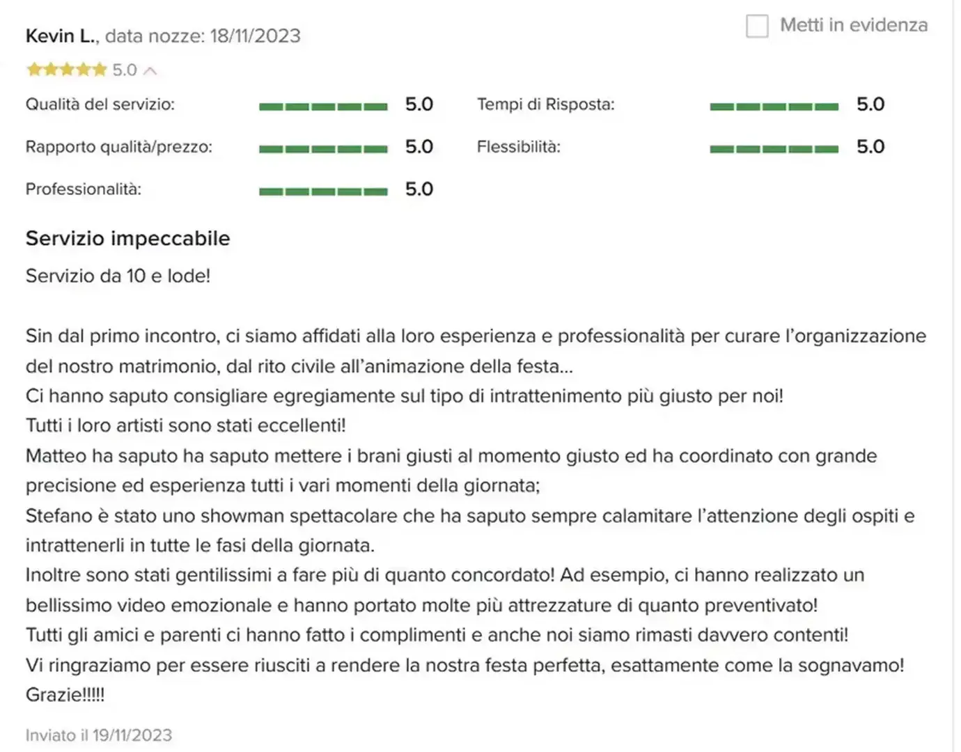 Affidati dell'opinione delle persone che mi hanno voluto per organizzare il loro Evento.